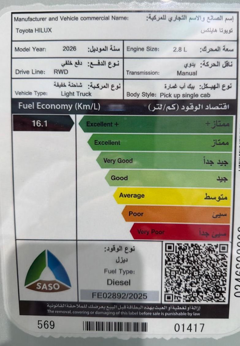 الاستهلاك الاقتصادي للوقود 16.1 كم / لتر
