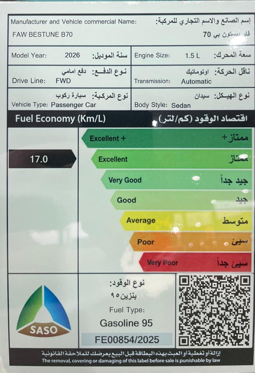 مواصفات السيارة محرك 4 سلندر تيربو سعة 1.5 لتر دخول ذكي تشغيل بصمة دفع أمامي شاشة معلومات تعمل باللمس كاميرا خلفية